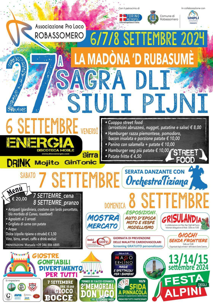La nostra Società di Mutuo Soccorso sarà presente alla mostra mercato domenica 8 Settembre organizzata dalla Pro Loco di Robassomero in occasione della 27^ Sagra dli Siuli Pijni.